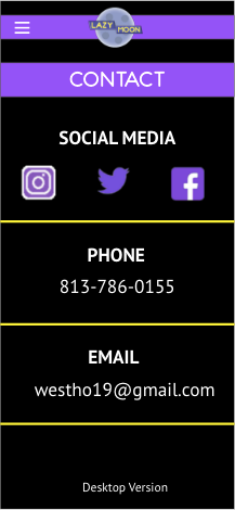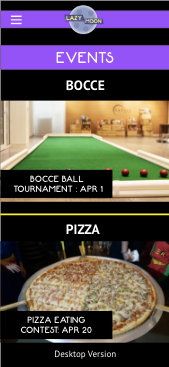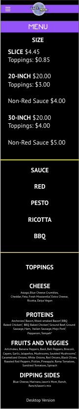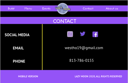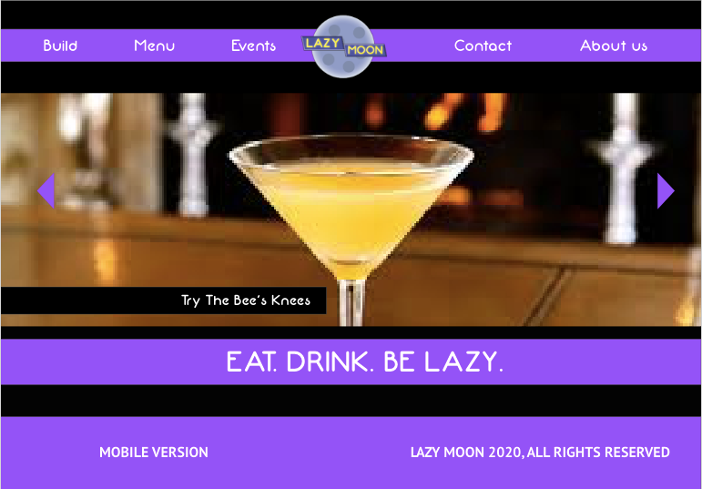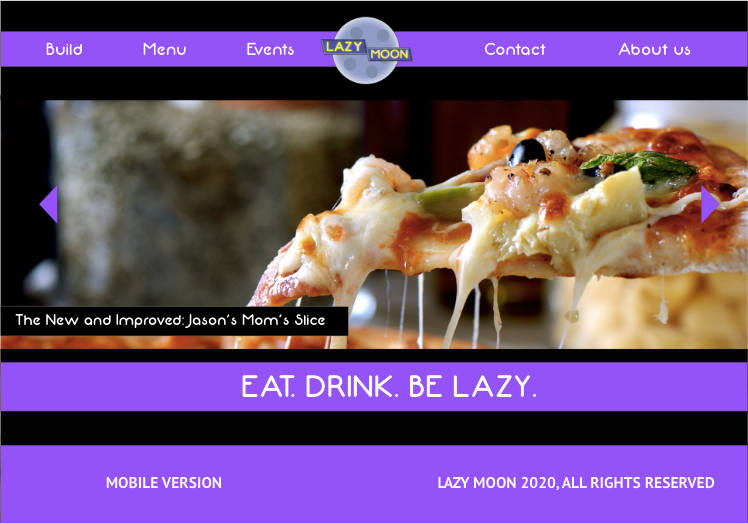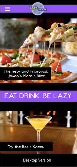 A rebranded website/app for an existing pizza parlor called Lazy Moon.